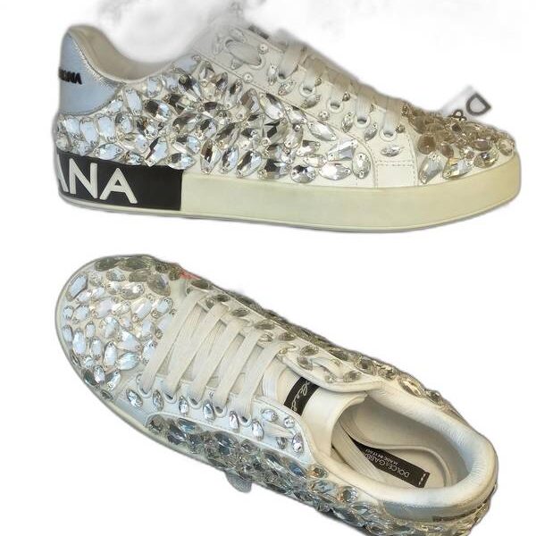 dolce gabbana white silver crystal logo portofino